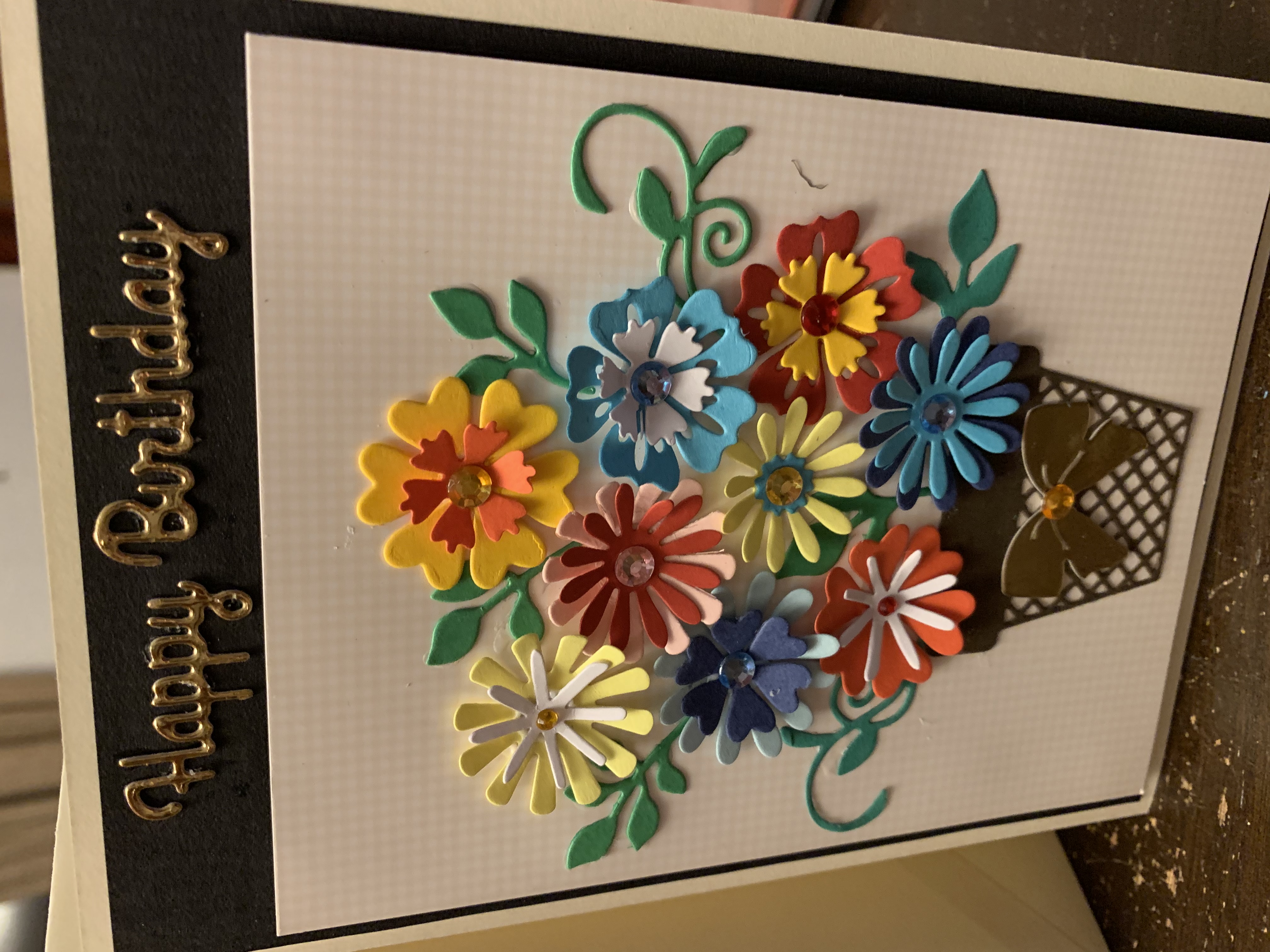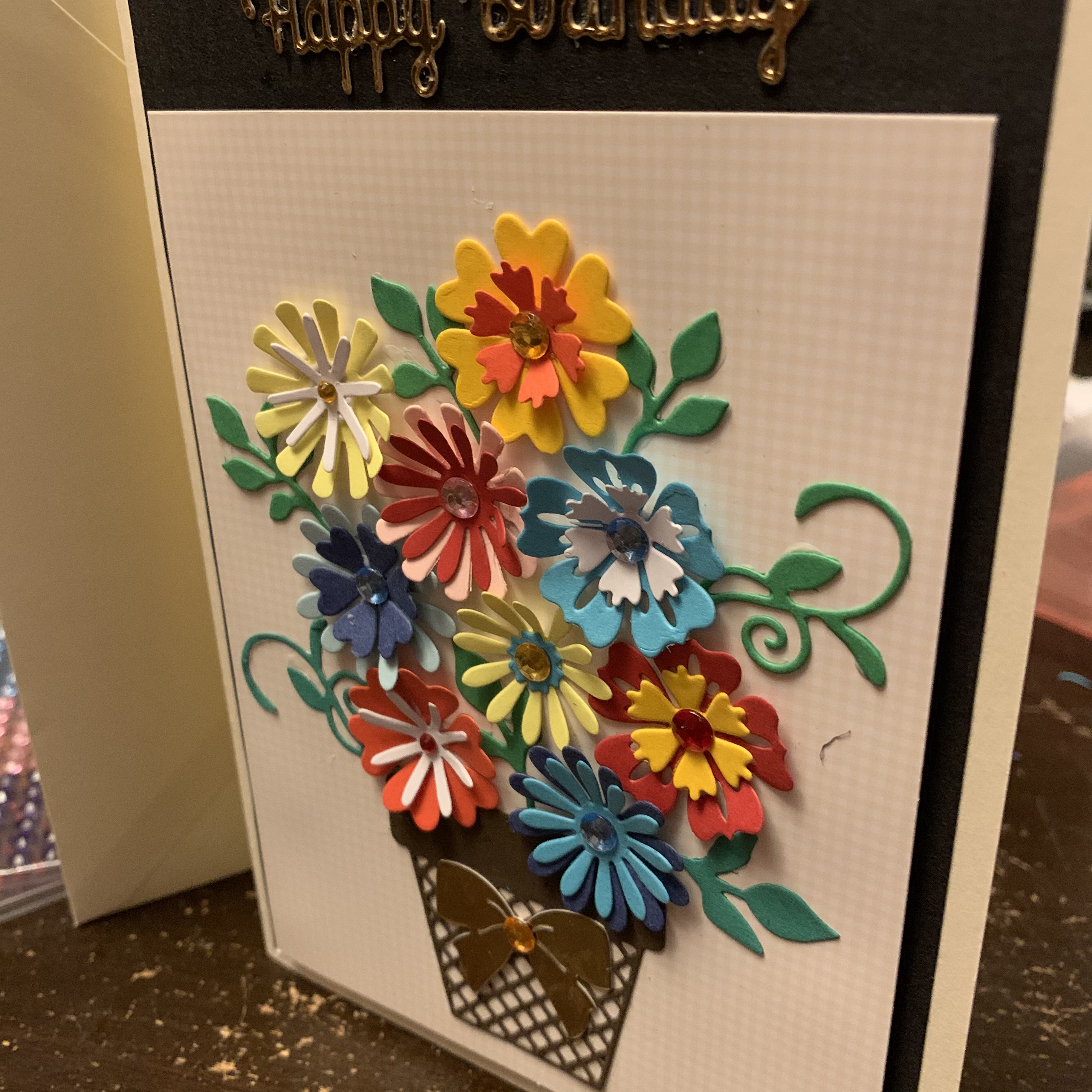 Birthday Card Flower Pot with Multi Coloured 3D flowers.