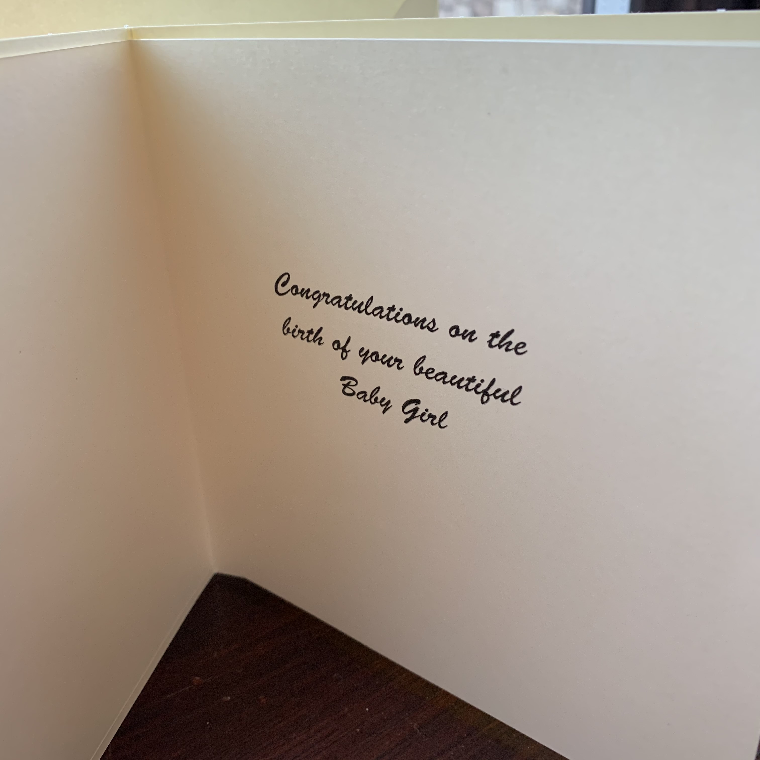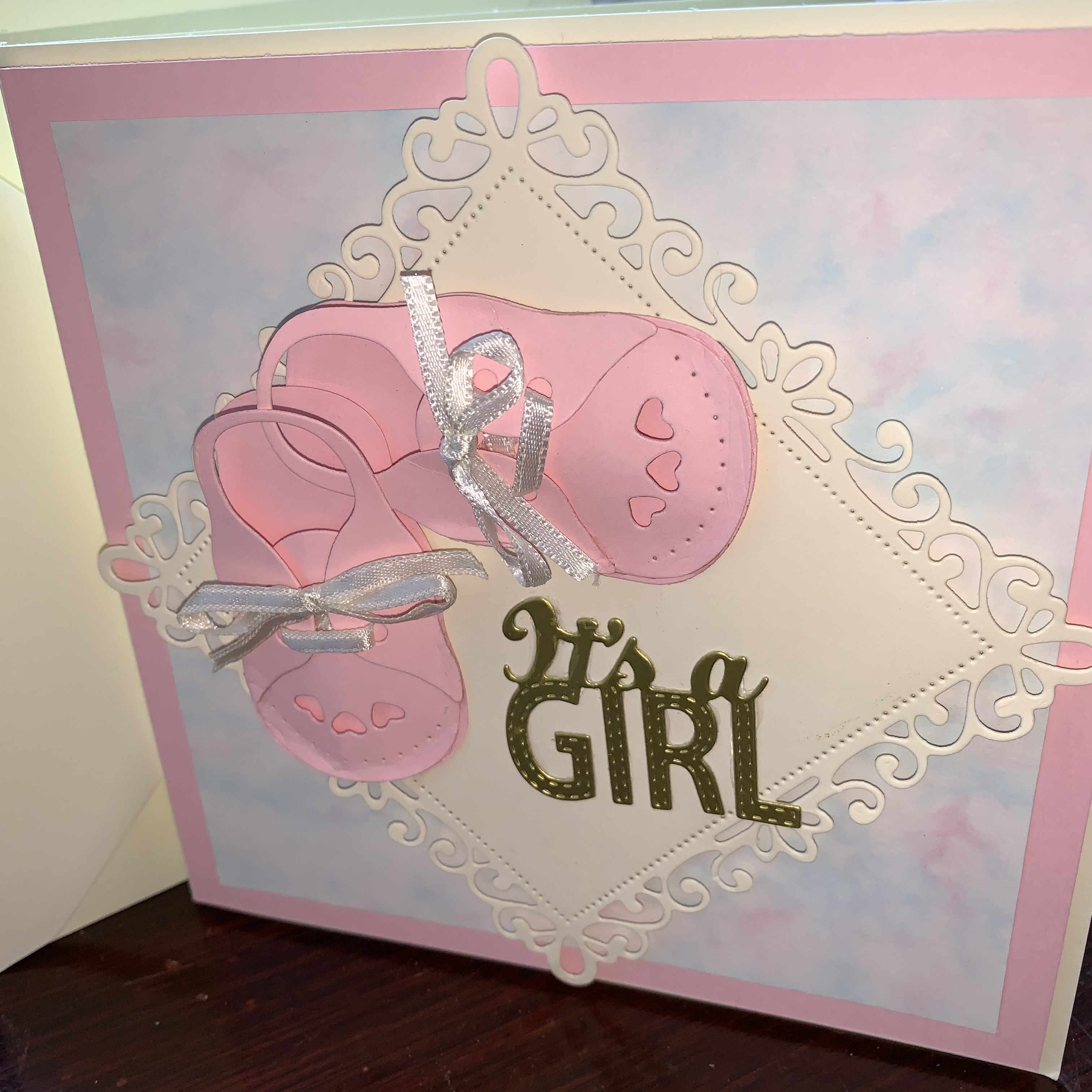 It’s a Girl Card. 6″ x 6″ with insert ‘Congratulations on the birth of your Beautiful Baby Girl’