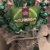All bouquets are made to order. If you would like anything in particular, I will do my best to supply. For example, I can add miniature bottles or treats for cats and dogs. If it will fit in I can add it to your bouquet (At cost)